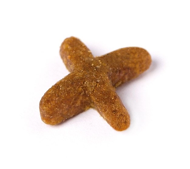 COMPOSITION: dehydrated poultry, rice, maize, animal fat (poultry, beef), maize gluten, whole egg powder, vegetable fibres (3.5%), dried chicory pulp, salmon oil (2.0%), cellulose, hydrolysed chicken liver, linseed oil, hydrolysate of yeast, Fructo-Oligo-Sacchariden (FOS) (0.04%).